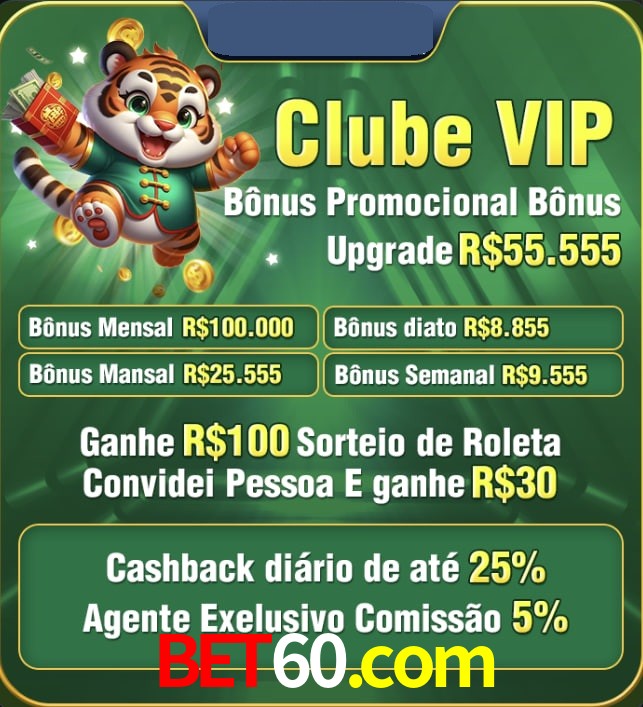 O bet60 Cassino oferece uma experiência de jogo completa, repleta de opções para todos os perfis de jogadores. Com uma vasta seleção de caça-níqueis, jogos de cassino ao vivo, apostas esportivas e jogos de pescaria, a plataforma se destaca como uma das melhores do mercado. Além disso, os usuários contam com promoções exclusivas, um sistema de pagamento seguro e suporte ao cliente disponível 24 horas por dia.
